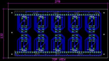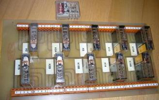 Ein anderes Produkt, welches für den Einsatz in sicherheitsrelevanten Arbeitshebebühnen erstellt wurde, war eine universell einsetzbare Relaiskarte mit 10 Sicherheitsrelais bei möglichst geringem Platzbedarf. Die Leiterbahnen darauf sind so angeordnet, dass die Platine auch in fünf Einzelteile zerteilt werden könnte, ohne die Funktion einzelner Relaismodule zu beeinträchtigen. Auch ist es möglich, die Relaisspulen durch einfaches Trennen einer Leiterbahn vom gemeinsamen Ground-Potenzial zu trennen. |