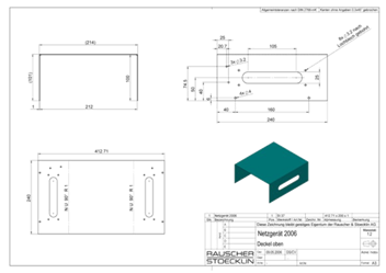 Die Pläne für das neu angepasste Gehäuse haben wir mit Hilfe des CAD-Programms SolidWorks 2007 erstellt, Und der Grundschule Metall (wird für R&S im ersten Lehrjahr absolviert) gesandt, damit die künftigen Lehrlinge dort das neue Gehäuse herstellen können.